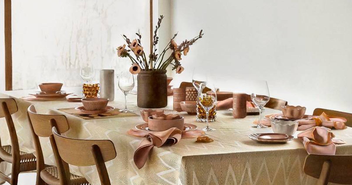 ニュアンスカラー シナモンとグリーンの食器でナチュラルな空間