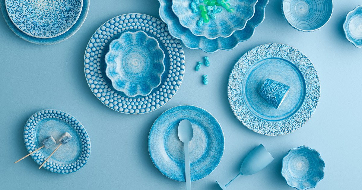 深みのある色と爽やかな色の食器を組み合わせて個性的に演出
