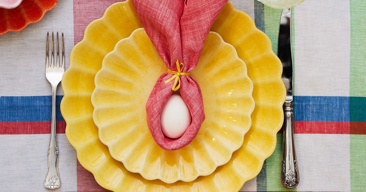 カラフルな食器でイースターのテーブルセッティング